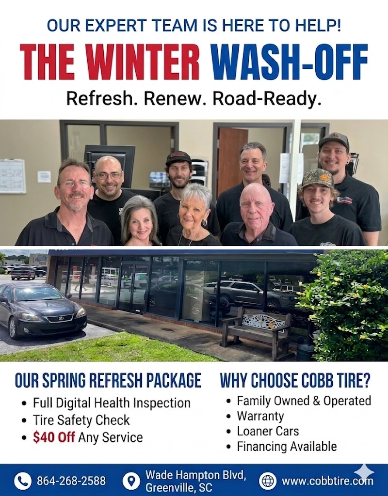 Spring is soon to arrive and summer will be here in no time. Cobb Tire and Auto Repair is offering $40 off on any service performed that is over $80.00.